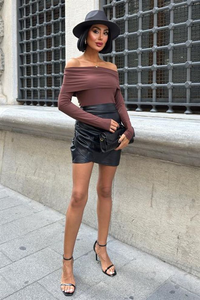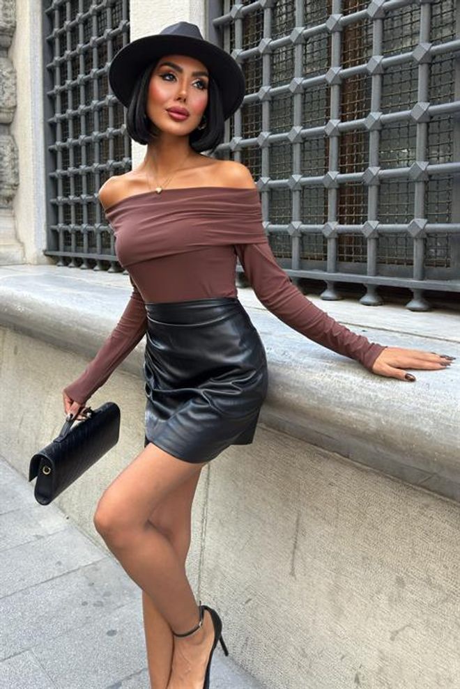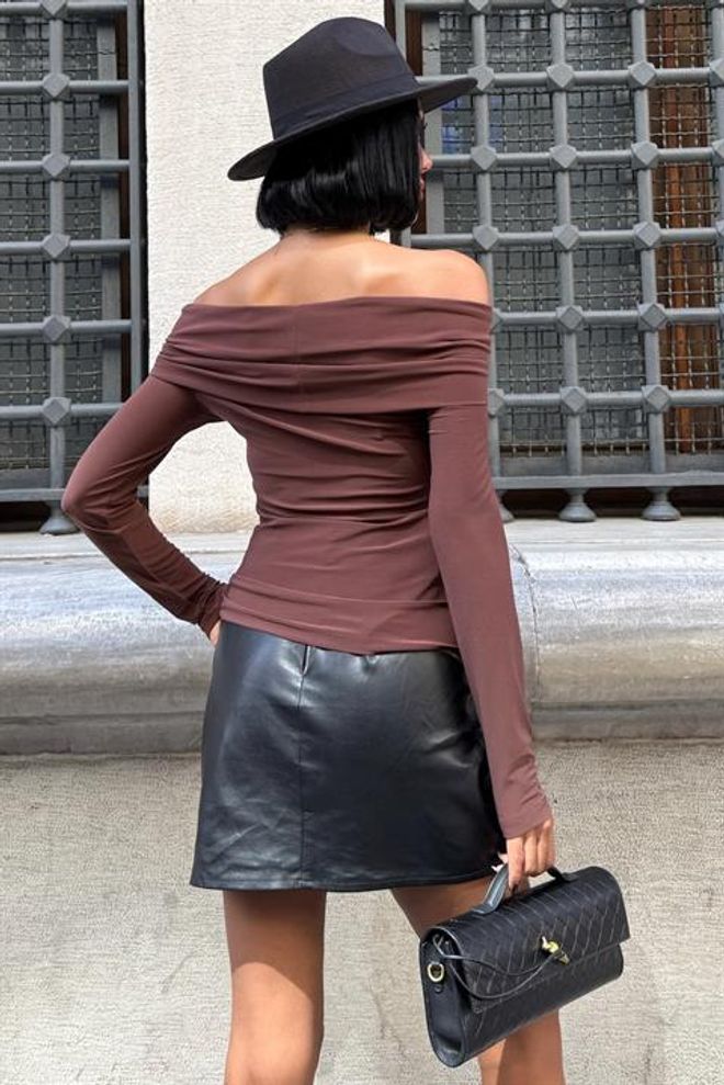 Γυναικεία μπλούζα καφέ off shoulderΗ μπλούζα off shoulder είναι αυτό το essential του χειμώνα που δεν λείπει ποτέ από την γκαρνταρόμπα.