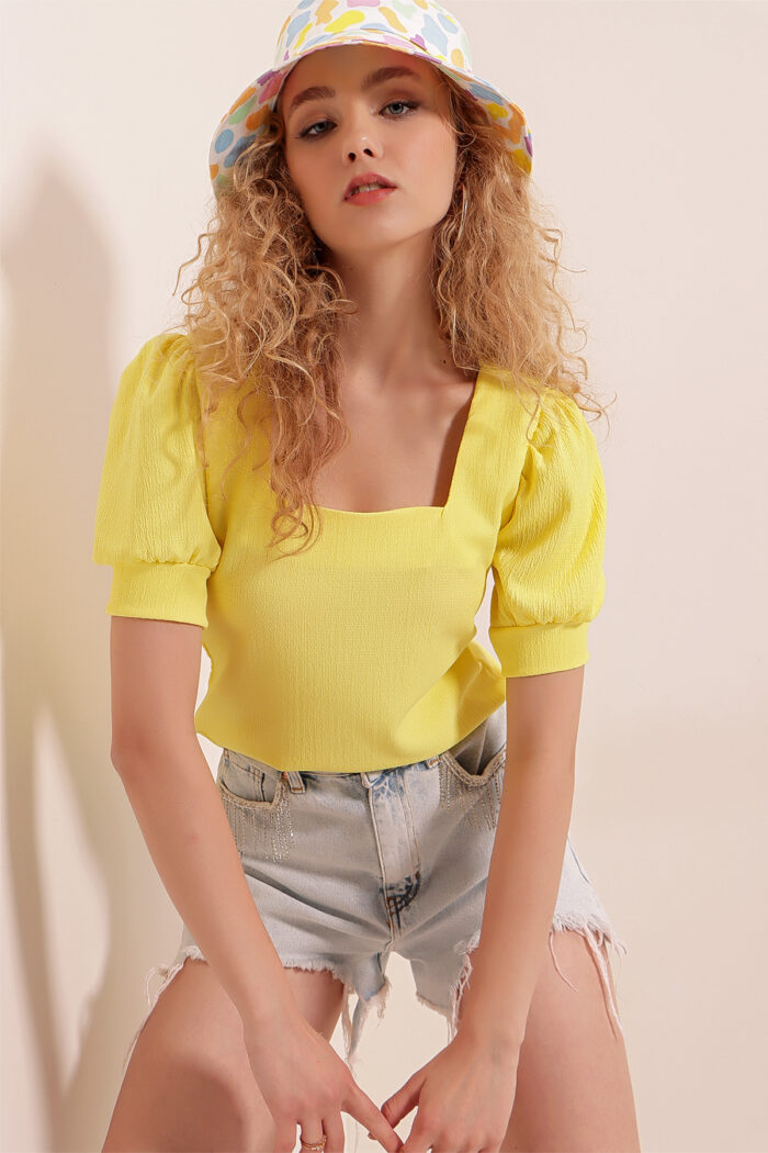 Γυναικεία μπλούζα κίτρινη με τετράγωνη λαιμόκοψη και μανίκια.Αυτά τα απλά μπλουζάκια,θα τα λατρέψεις.Φαίνονται υπέροχα με ένα oversized σακάκι και ψηλόμεσο τζιν.Δεν υπάρχει ρούχο με το οποίο δεν ταιριάζουν,και σίγουρα πάνε τέλεια με όλα τα basic ρούχα σου.Tube jeans,mom jeans, boyfriends και παντελόνια καμπάνα.