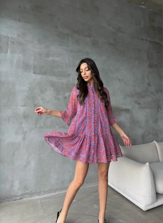 Γυναικείο φόρεμα λιλά δαντελένιο,σε στύλ πουκαμισοφορέματος με κουμπιά μπροστα,3/4 μανίκια και φρου φρου στο τελείωμα.Ένα ρομαντικό φόρεμα που δεν πρέπει να λείπει από την ντουλάπα σου.Το λιλά δαντελένιο φόρεμα με κοραλί λουλούδια είναι ο απόλυτος συνδυασμός χρωμάτων για τις εντυπωσιακές σου εμφανίσεις.Ολοκληρώστε το outfit σας με σανδάλια ή πλατφόρμες και απολαύστε την ημέρα από το πρωί μέχρι και το βράδυ.