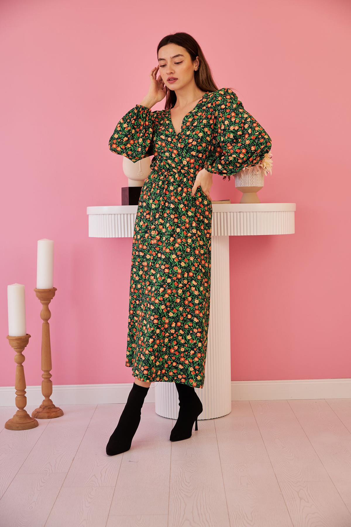 Γυναικείο φόρεμα maxi με floral μοτίβο,λάστιχο κάτω από το στήθος και balloon μανίκια.Τα φορέματα με λουλούδια επιστρέφουν στην γκαρνταρόμπα μας φωτίζοντας το στυλ μας,ως η αλάνθαστη επιλογή που δημιουργεί το τέλειο look με μια κίνηση.