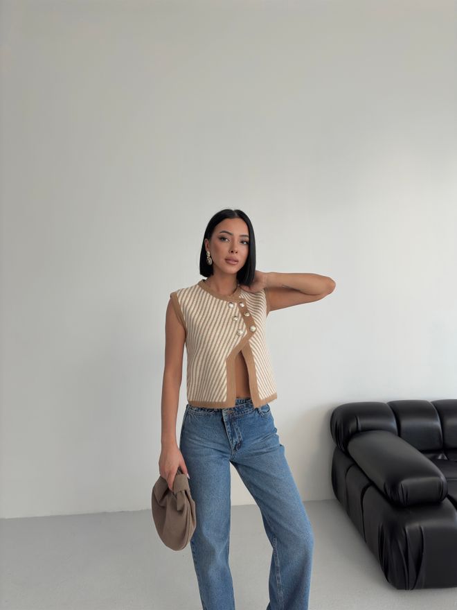 Γυναικεία μπλούζα white coffee αμάνικη,με διακοσμητικά κουμπιά.Η αμάνικη μπλούζα white coffee είναι αυτό το essential του χειμώνα που δεν λείπει ποτέ από την γκαρνταρόμπα.