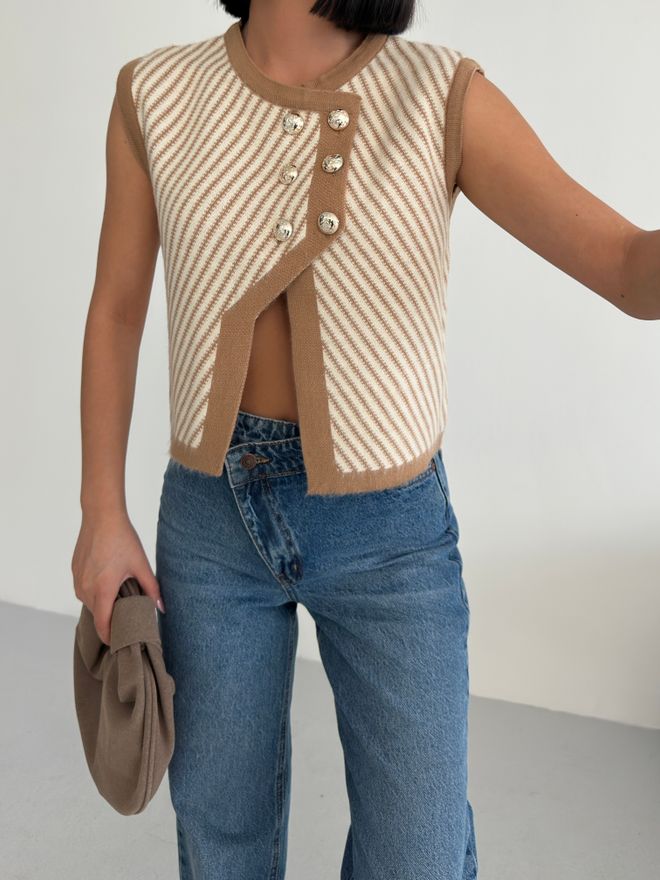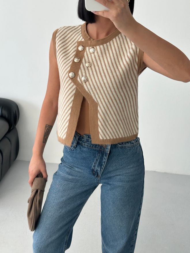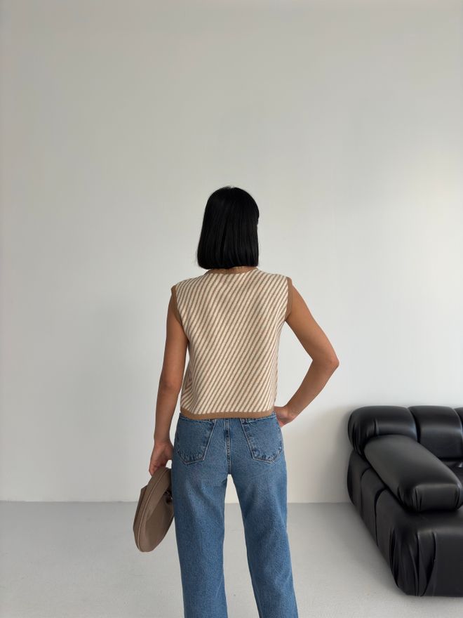 Η αμάνικη ριγέ white coffee μπλούζα είναι μια πολύ καλή ενδυματολογική επιλογή για μία βόλτα φορώντας ένα τζίν,με μπoτάκια ψηλά ή χαμηλά.
