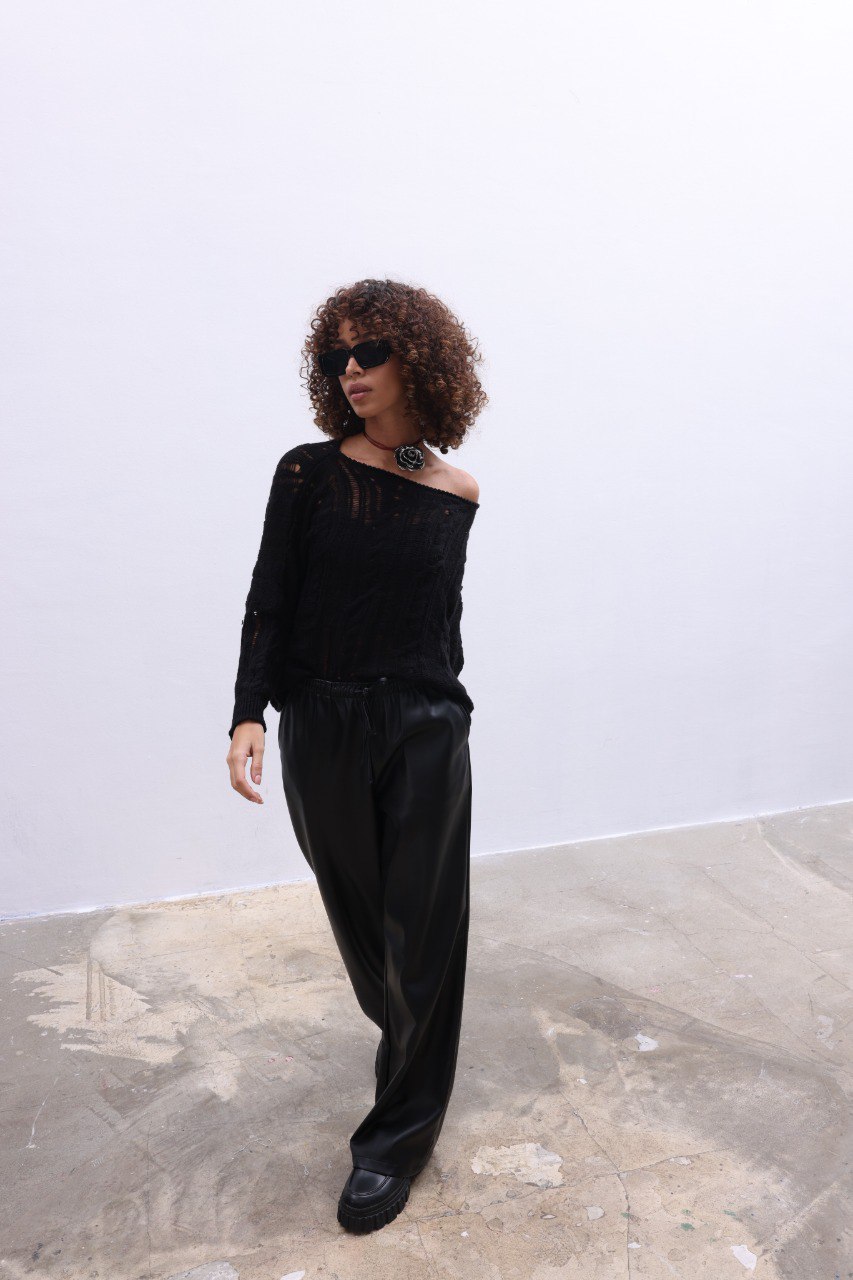 Τέλος εξίσου όμορφα μπορούν να συνδυάστουν τα μαύρα πλεκτά με σκισίματα με leather skirts ή και θηλυκές πλισέ φούστες,με baggy τζίν,ψηλόμεσα tailored παντελόνια αλλά και με leggings.