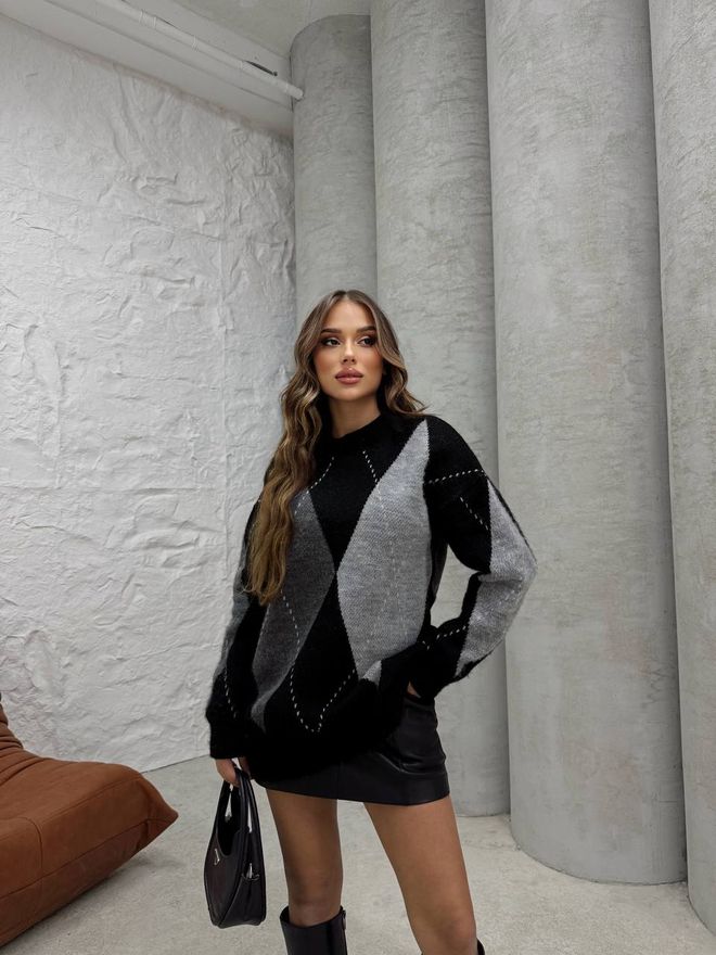 Μπορούμε να συνδυάσουμε το μαύρο-γκρί πουλόβερ με ρώμβους με τζίν και sneakers για το πιο comfy chic look.Ωστόσο τα πουλόβερ δεν είναι απλά ένα cozy item για τις πιο relaxed εμφανίσεις μας.Είναι αυτό το κομμάτι που μας δίνει τη δυνατότητα για πολλά διαφορετικά στύλ,από σοφιστικέ και office,μέχρι και glamorous.Αρκεί να βρούμε την απαραίτητη έμπνευση και να αξιοποιήσουμε σωστά όλα τα πουλόβερ που έχουμε στην γκαρνταρόμπα μας.